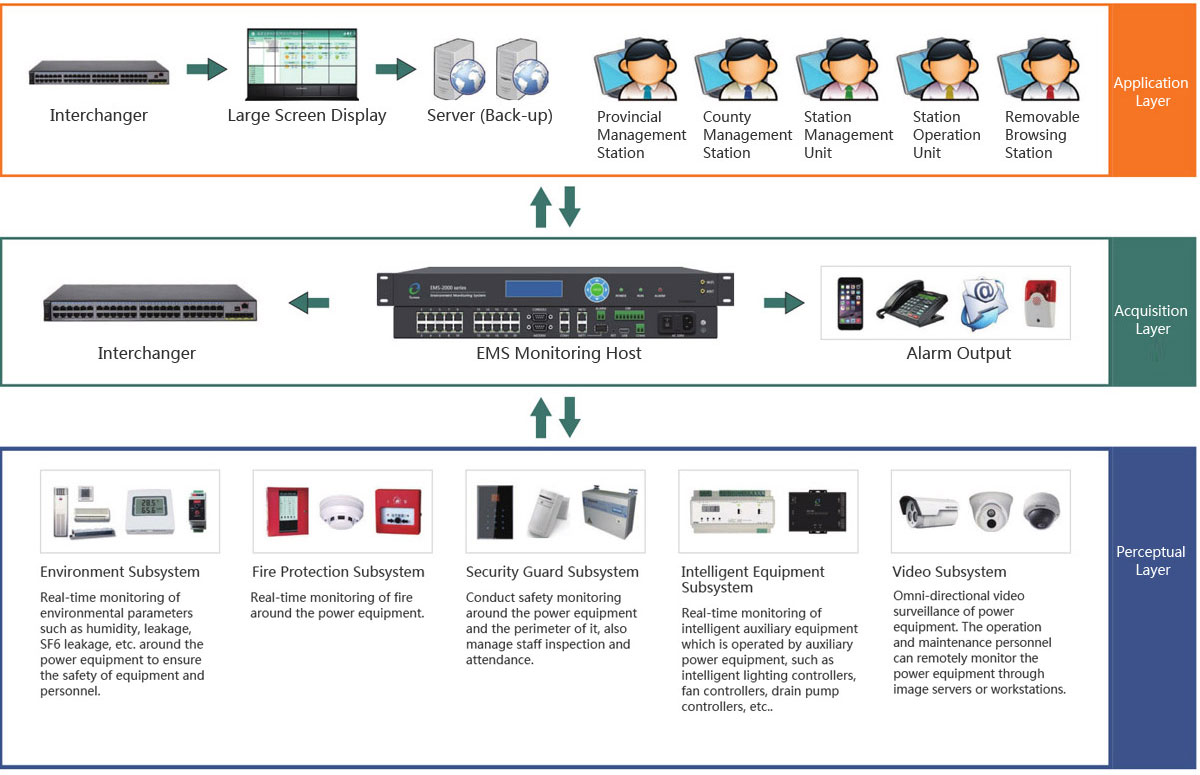 This system consists of EMVIEW network monitoring platform, EMS series monitoring host and sensors.